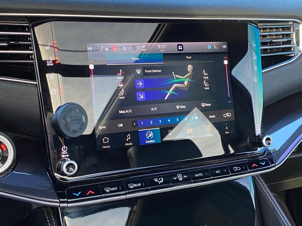 Wagoneer PREMIUM GROUP PANO ROOF CLEAN 1 OWNER CARFAX, 4D Sport Utility, 3.0L I6, 8-Speed Automatic, 4WD, Velvet Red Pearlcoat, Black Leather, 10 Speakers, 3.55 Rear Axle Ratio, 3rd row seats: bench, 4-Wheel Disc Brakes, ABS brakes, Adjustable pedals, Air Conditioning, Alloy wheels, AM/FM radio: SiriusXM with 360L, Anti-whiplash front head restraints, Apple CarPlay/Android Auto, Audio memory, Auto-dimming door mirrors, Auto-dimming Rear-View mirror, Auto-leveling suspension, Automatic temperature control, Brake assist, Bumpers: body-color, Compass, Delay-off headlights, Driver door bin, Driver vanity mirror, Driver's Seat Mounted Armrest, Dual front impact airbags, Dual front side impact airbags, Electronic Stability Control, Emergency communication system: Wagoneer Connect, Exterior Parking Camera Rear, Four wheel independent suspension, Front anti-roll bar, Front Bucket Seats, Front Center Armrest w/Storage, Front dual zone A/C, Front fog lights, Front reading lights, Fully automatic headlights, Garage door transmitter, Heated door mirrors, Heated front seats, Heated steering wheel, Illuminated entry, Knee airbag, Leather Trimmed Bucket Seats, Low tire pressure warning, Memory seat, Navigation System, Normal Duty Suspension, Occupant sensing airbag, Outside temperature display, Overhead airbag, Overhead console, Panic alarm, Passenger door bin, Passenger seat mounted armrest, Passenger vanity mirror, Pedal memory, Power adjustable front head restraints, Power door mirrors, Power driver seat, Power Liftgate, Power passenger seat, Power steering, Power windows, Radio data system, Radio: Uconnect 5 Nav w/10.1 Display, Rear air conditioning, Rear anti-roll bar, Rear dual zone A/C, Rear reading lights, Rear seat center armrest, Rear window defroster, Rear window wiper, Reclining 3rd row seat, Remote keyless entry, Security system, Speed control, Speed-sensing steering, Speed-Sensitive Wipers, Split folding rear seat, Steering wheel memory, Steering wheel mounted audio controls, Tachometer, Telescoping steering wheel, Tilt steering wheel, Traction control, Trip computer, Turn signal indicator mirrors, Variably intermittent wipers, Ventilated front seats, Voltmeter, Wheels: 18 x 8.0 Aluminum Base Finish.