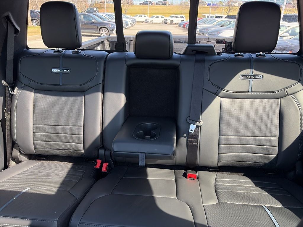 Max Tow Electronic Locking w/3.55 Axle Ratio, ROUGH COUNTRY LIFT, BFGoodrich KO3 TIRES, F-150 Platinum FUEL Wheels! 360 CAM, 36 GAL TANK, BLUECRUISE, 4D SuperCrew, 3.5L V6 EcoBoost, 10-Speed Automatic, 4WD, Black Metallic, Black Leather, 4-Wheel Disc Brakes, 4x4 FX4 Off-Road Bodyside Decal, 8 Speakers, ABS brakes, Active Cruise Control, Adjustable pedals, Air Conditioning, Alloy wheels, AM/FM radio: SiriusXM with 360L, Auto High-beam Headlights, Auto tilt-away steering wheel, Auto-dimming door mirrors, Auto-dimming Rear-View mirror, Automatic temperature control, Brake assist, Bumpers: body-color, Compass, Delay-off headlights, Driver door bin, Driver vanity mirror, Dual front impact airbags, Dual front side impact airbags, Electronic Stability Control, Emergency communication system: SYNC 4 911 Assist, Equipment Group 702A High, Front anti-roll bar, Front Bucket Seats, Front Center Armrest, Front dual zone A/C, Front fog lights, Front License Plate Bracket, Front reading lights, Front wheel independent suspension, Fully automatic headlights, FX4 Off-Road Package, Garage door transmitter, Heads-Up Display, Heated door mirrors, Heated front seats, Heated rear seats, Heated steering wheel, Hill Descent Control, Illuminated entry, Internet access capable: FordPass Connect 5G, Leather steering wheel, Low tire pressure warning, Max Tow Electronic Locking w/3.55 Axle Ratio, Memory seat, Monotube Rear Shocks, Navigation system: Connected Navigation, Occupant sensing airbag, Off-Road Tuned Front Shock Absorbers, Outside temperature display, Overhead airbag, Overhead console, Panic alarm, Passenger door bin, Passenger vanity mirror, Pedal memory, Power door mirrors, Power driver seat, Power passenger seat, Power steering, Power windows, Radio data system, Radio: B&O Unleashed Sound System by Bang & Olufsen, Rain sensing wipers, Rear reading lights, Rear seat center armrest, Rear step bumper, Rear window defroster, Remote keyless entry, Retractable Rear Center Step, Rock Crawl Mode, Security system, Speed control, Split folding rear seat, Steering wheel memory, Steering wheel mounted audio controls, Tachometer, Telescoping steering wheel, Tilt steering wheel, Traction control, Tray Style Floor Liner, Trip computer, Turn signal indicator mirrors, Twin Panel Moonroof, Unique Multi-Contour Leather Bucket Seats, Variably intermittent wipers, Ventilated front seats, Voltmeter.